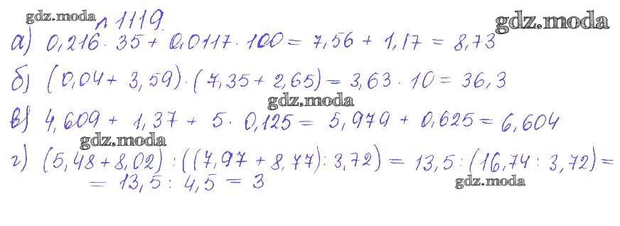 ОТВЕТ на задание № 1119 Сборник задач и упражнений по Математике 5 класс Гамбарин