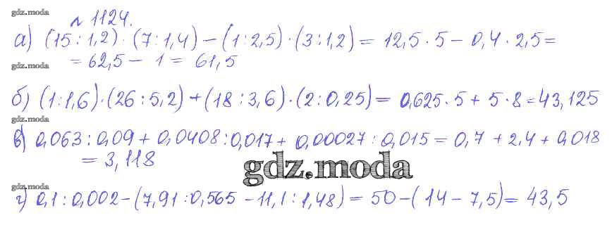 ОТВЕТ на задание № 1124 Сборник задач и упражнений по Математике 5 класс Гамбарин
