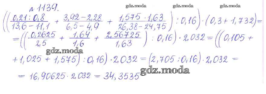 ОТВЕТ на задание № 1139 Сборник задач и упражнений по Математике 5 класс Гамбарин