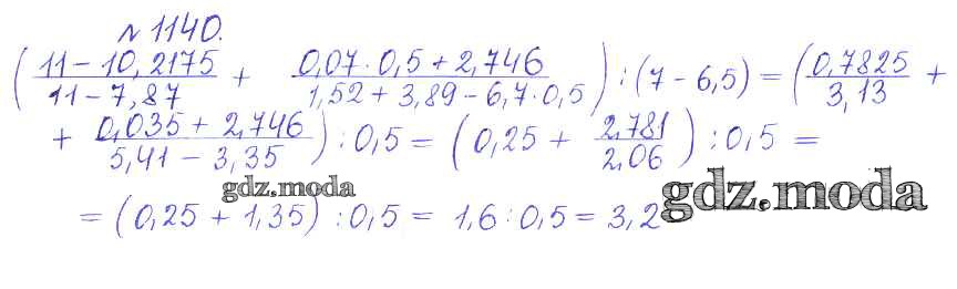 ОТВЕТ на задание № 1140 Сборник задач и упражнений по Математике 5 класс Гамбарин