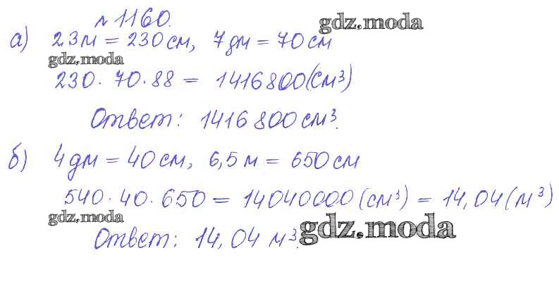 ОТВЕТ на задание № 1160 Сборник задач и упражнений по Математике 5 класс Гамбарин