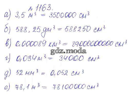 ОТВЕТ на задание № 1163 Сборник задач и упражнений по Математике 5 класс Гамбарин