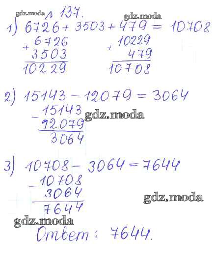 ОТВЕТ на задание № 137 Сборник задач и упражнений по Математике 5 класс Гамбарин