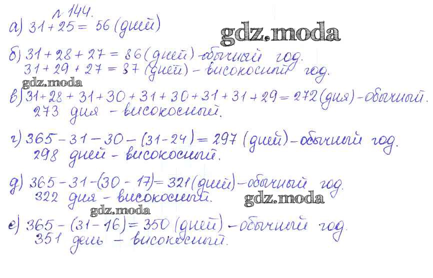 ОТВЕТ на задание № 144 Сборник задач и упражнений по Математике 5 класс Гамбарин