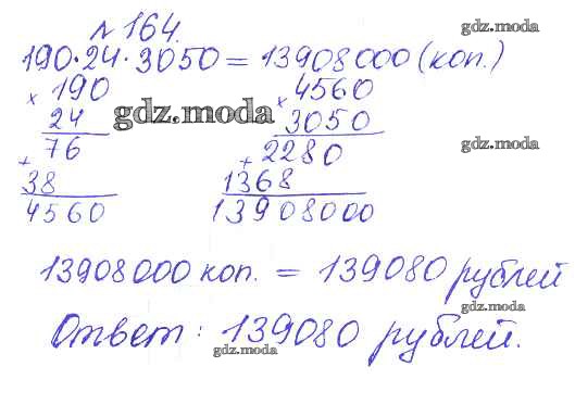 ОТВЕТ на задание № 164 Сборник задач и упражнений по Математике 5 класс Гамбарин
