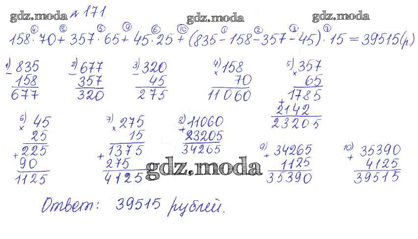 ОТВЕТ на задание № 171 Сборник задач и упражнений по Математике 5 класс Гамбарин