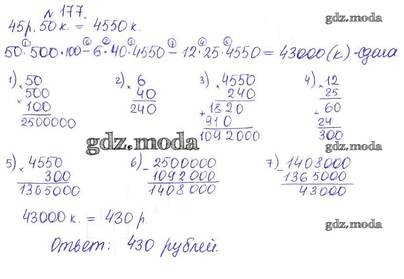 ОТВЕТ на задание № 177 Сборник задач и упражнений по Математике 5 класс Гамбарин