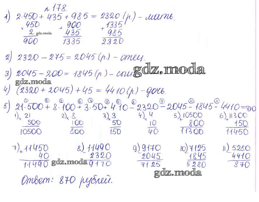 ОТВЕТ на задание № 178 Сборник задач и упражнений по Математике 5 класс Гамбарин