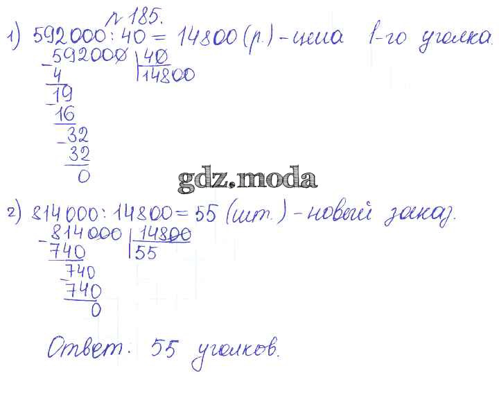 ОТВЕТ на задание № 185 Сборник задач и упражнений по Математике 5 класс Гамбарин