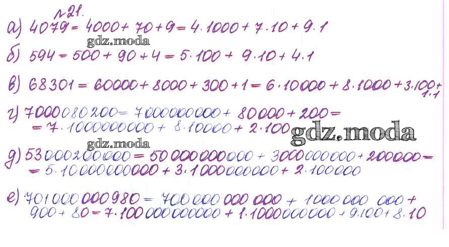ОТВЕТ на задание № 21 Сборник задач и упражнений по Математике 5 класс Гамбарин
