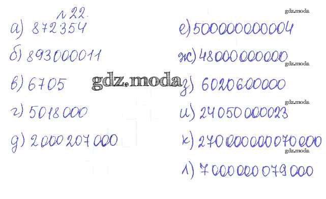 ОТВЕТ на задание № 22 Сборник задач и упражнений по Математике 5 класс Гамбарин