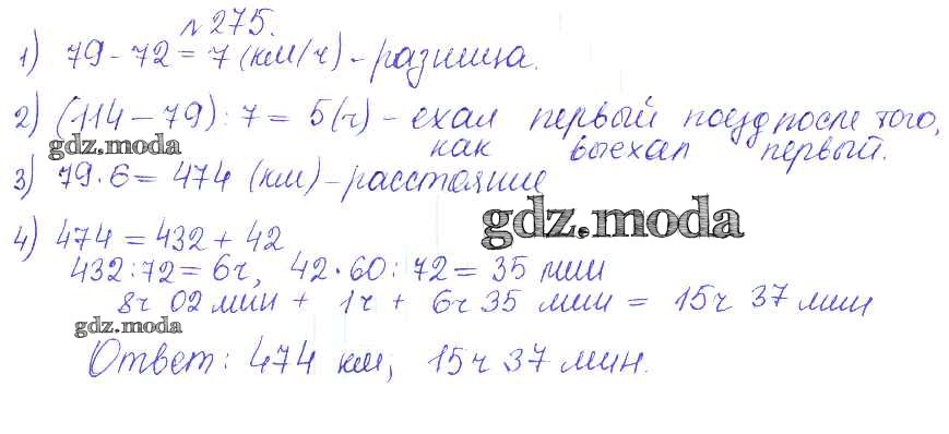 ОТВЕТ на задание № 275 Сборник задач и упражнений по Математике 5 класс Гамбарин
