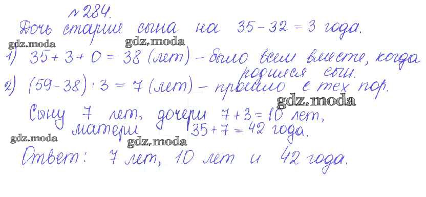 ОТВЕТ на задание № 284 Сборник задач и упражнений по Математике 5 класс Гамбарин