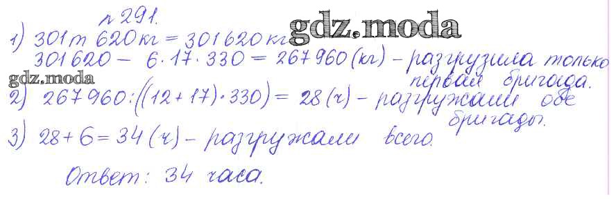 ОТВЕТ на задание № 291 Сборник задач и упражнений по Математике 5 класс Гамбарин