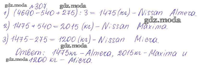 ОТВЕТ на задание № 307 Сборник задач и упражнений по Математике 5 класс Гамбарин