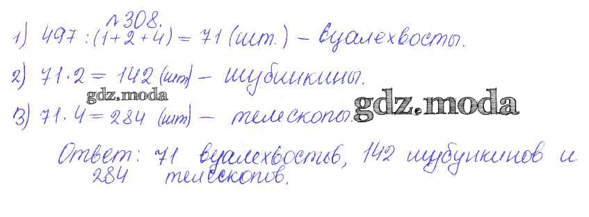 ОТВЕТ на задание № 308 Сборник задач и упражнений по Математике 5 класс Гамбарин