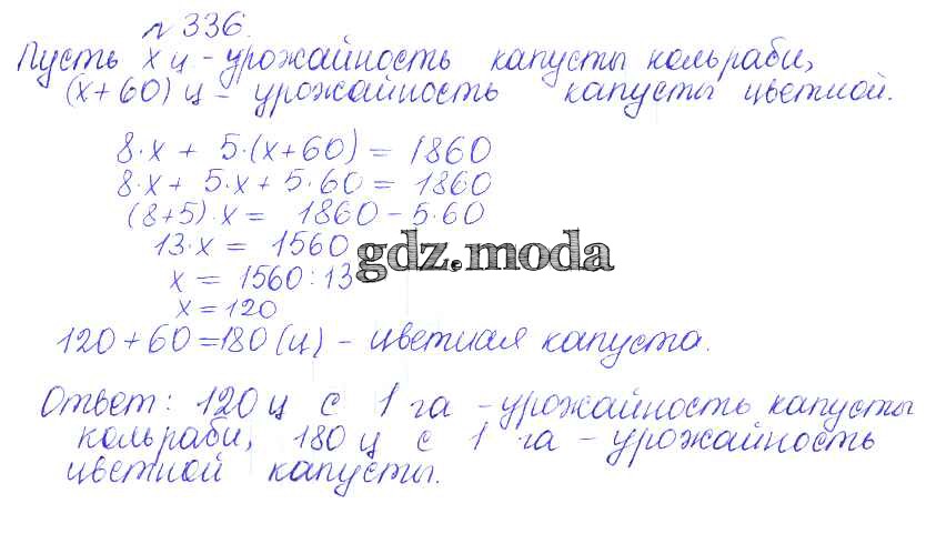 ОТВЕТ на задание № 336 Сборник задач и упражнений по Математике 5 класс Гамбарин