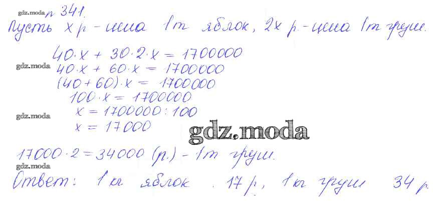 ОТВЕТ на задание № 341 Сборник задач и упражнений по Математике 5 класс Гамбарин