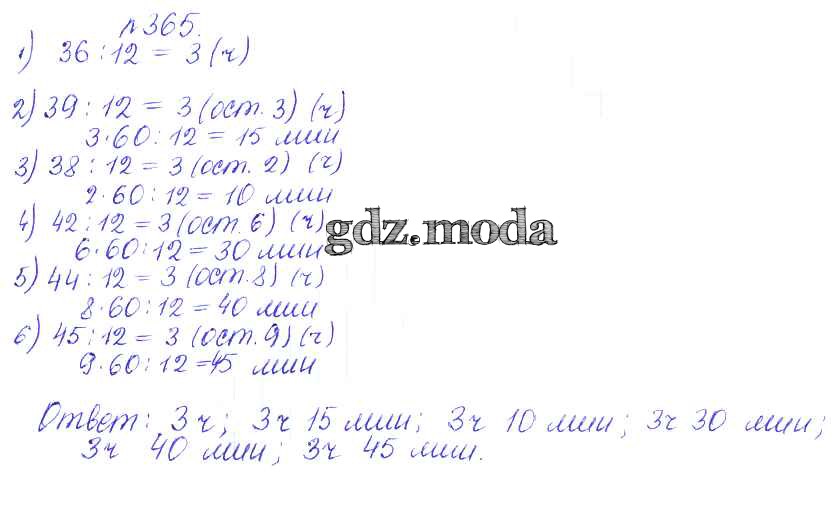 ОТВЕТ на задание № 365 Сборник задач и упражнений по Математике 5 класс Гамбарин