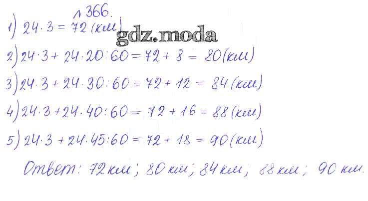 ОТВЕТ на задание № 366 Сборник задач и упражнений по Математике 5 класс Гамбарин