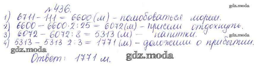 ОТВЕТ на задание № 436 Сборник задач и упражнений по Математике 5 класс Гамбарин