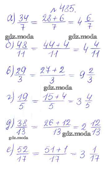 ОТВЕТ на задание № 485 Сборник задач и упражнений по Математике 5 класс Гамбарин