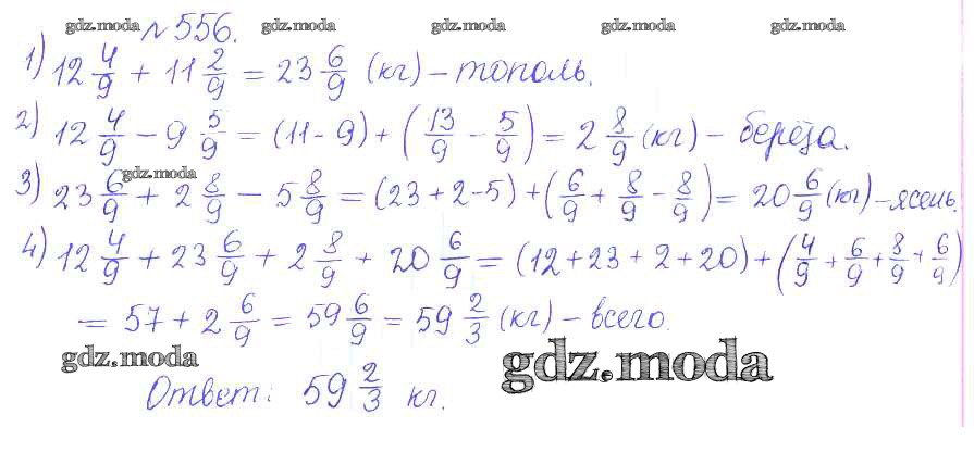 ОТВЕТ на задание № 556 Сборник задач и упражнений по Математике 5 класс Гамбарин