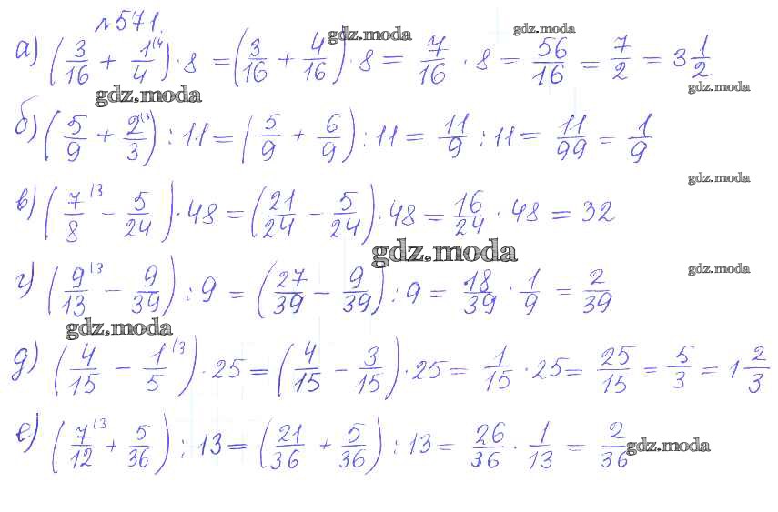 ОТВЕТ на задание № 571 Сборник задач и упражнений по Математике 5 класс Гамбарин