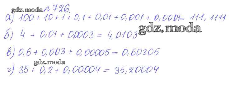 ОТВЕТ на задание № 726 Сборник задач и упражнений по Математике 5 класс Гамбарин