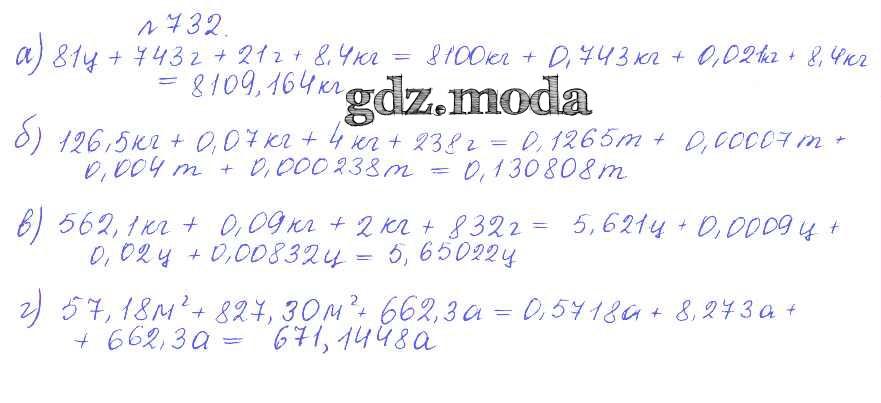 ОТВЕТ на задание № 732 Сборник задач и упражнений по Математике 5 класс Гамбарин