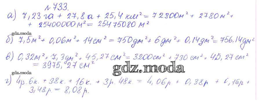 ОТВЕТ на задание № 733 Сборник задач и упражнений по Математике 5 класс Гамбарин