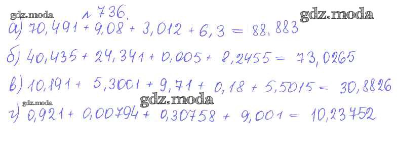 ОТВЕТ на задание № 736 Сборник задач и упражнений по Математике 5 класс Гамбарин