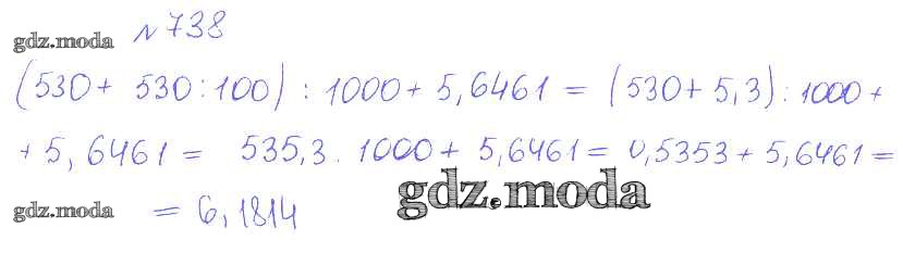 ОТВЕТ на задание № 738 Сборник задач и упражнений по Математике 5 класс Гамбарин