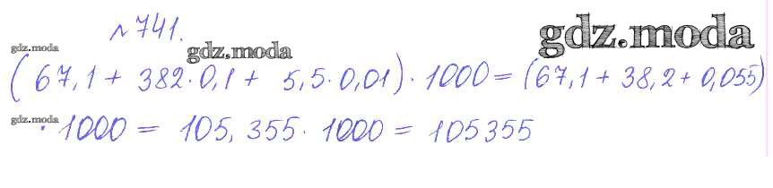 ОТВЕТ на задание № 741 Сборник задач и упражнений по Математике 5 класс Гамбарин