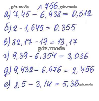 ОТВЕТ на задание № 756 Сборник задач и упражнений по Математике 5 класс Гамбарин