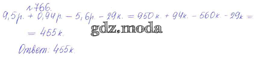 ОТВЕТ на задание № 766 Сборник задач и упражнений по Математике 5 класс Гамбарин