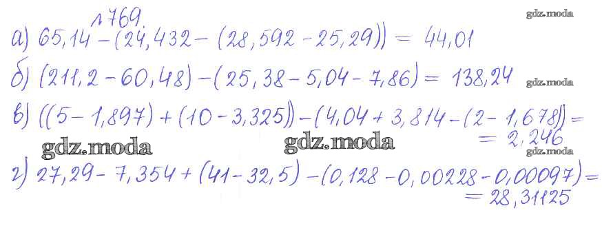 ОТВЕТ на задание № 769 Сборник задач и упражнений по Математике 5 класс Гамбарин