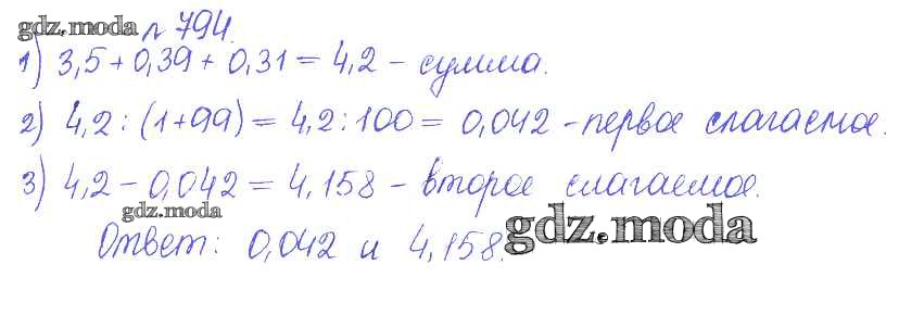 ОТВЕТ на задание № 794 Сборник задач и упражнений по Математике 5 класс Гамбарин