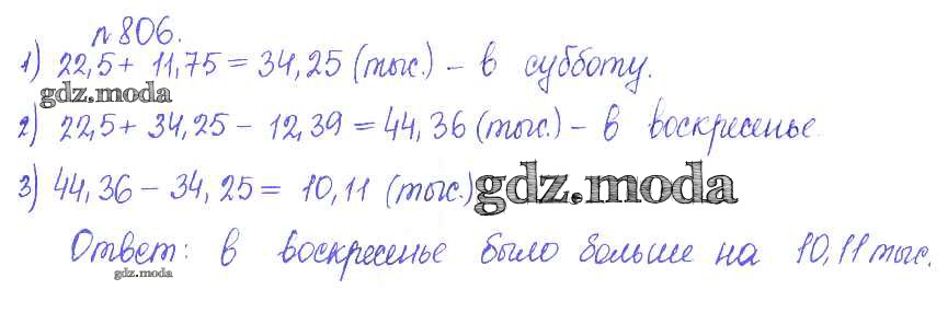 ОТВЕТ на задание № 806 Сборник задач и упражнений по Математике 5 класс Гамбарин