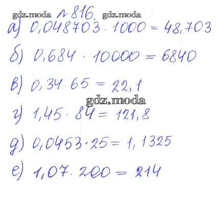 ОТВЕТ на задание № 816 Сборник задач и упражнений по Математике 5 класс Гамбарин