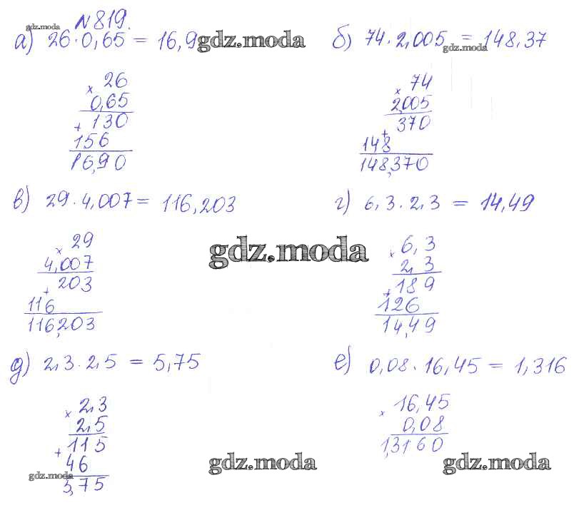 ОТВЕТ на задание № 819 Сборник задач и упражнений по Математике 5 класс Гамбарин