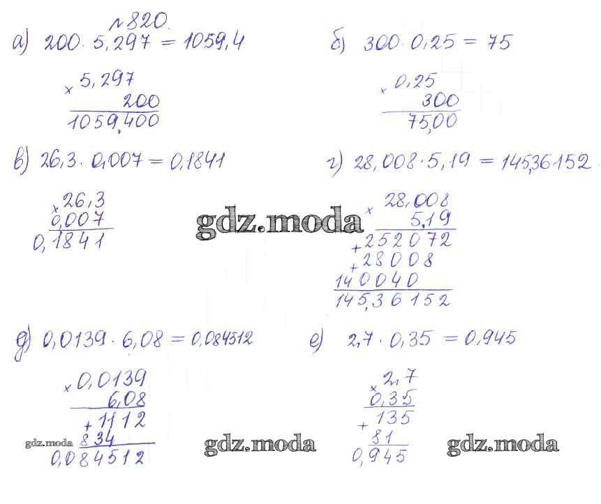 ОТВЕТ на задание № 820 Сборник задач и упражнений по Математике 5 класс Гамбарин