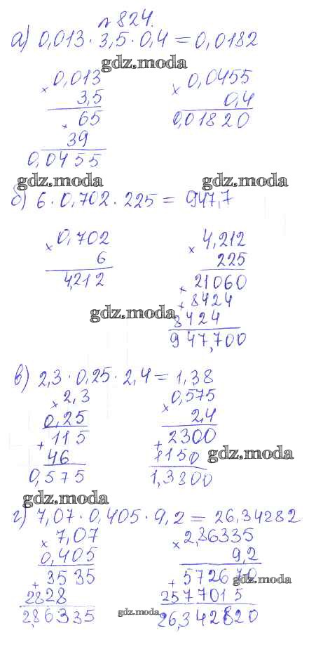 ОТВЕТ на задание № 824 Сборник задач и упражнений по Математике 5 класс Гамбарин
