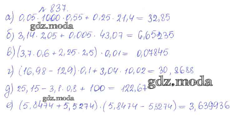 ОТВЕТ на задание № 837 Сборник задач и упражнений по Математике 5 класс Гамбарин