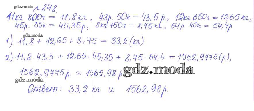 ОТВЕТ на задание № 848 Сборник задач и упражнений по Математике 5 класс Гамбарин
