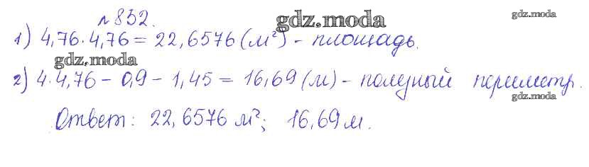ОТВЕТ на задание № 852 Сборник задач и упражнений по Математике 5 класс Гамбарин
