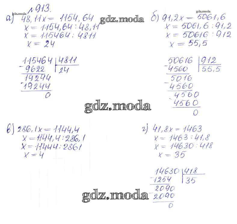 ОТВЕТ на задание № 913 Сборник задач и упражнений по Математике 5 класс Гамбарин