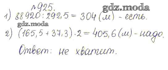 ОТВЕТ на задание № 925 Сборник задач и упражнений по Математике 5 класс Гамбарин