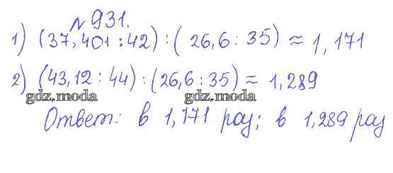 ОТВЕТ на задание № 931 Сборник задач и упражнений по Математике 5 класс Гамбарин