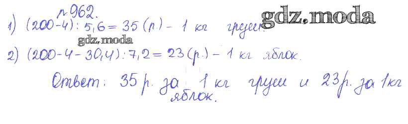 ОТВЕТ на задание № 962 Сборник задач и упражнений по Математике 5 класс Гамбарин